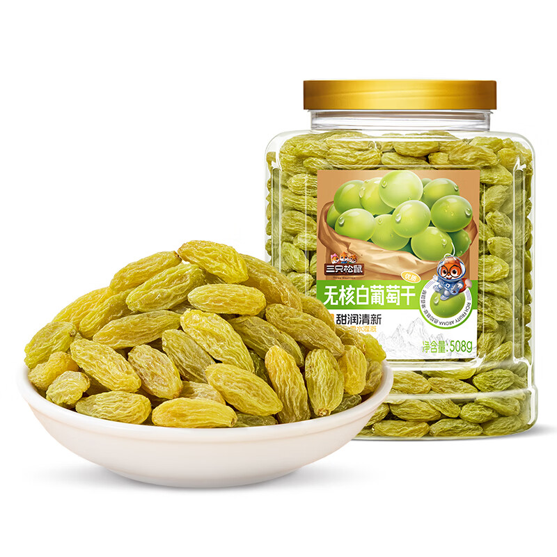 三只松鼠无核白葡萄干508g 蜜饯果干零添加免洗日常解馋下午茶休闲零食