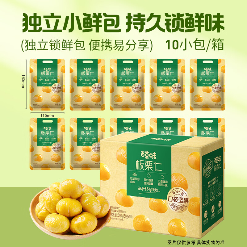 百草味熟制板栗仁500g/10小包 坚果炒货休闲零食坚果板栗子仁即食