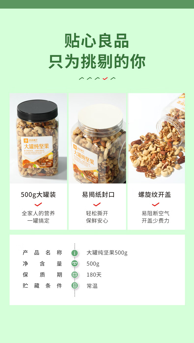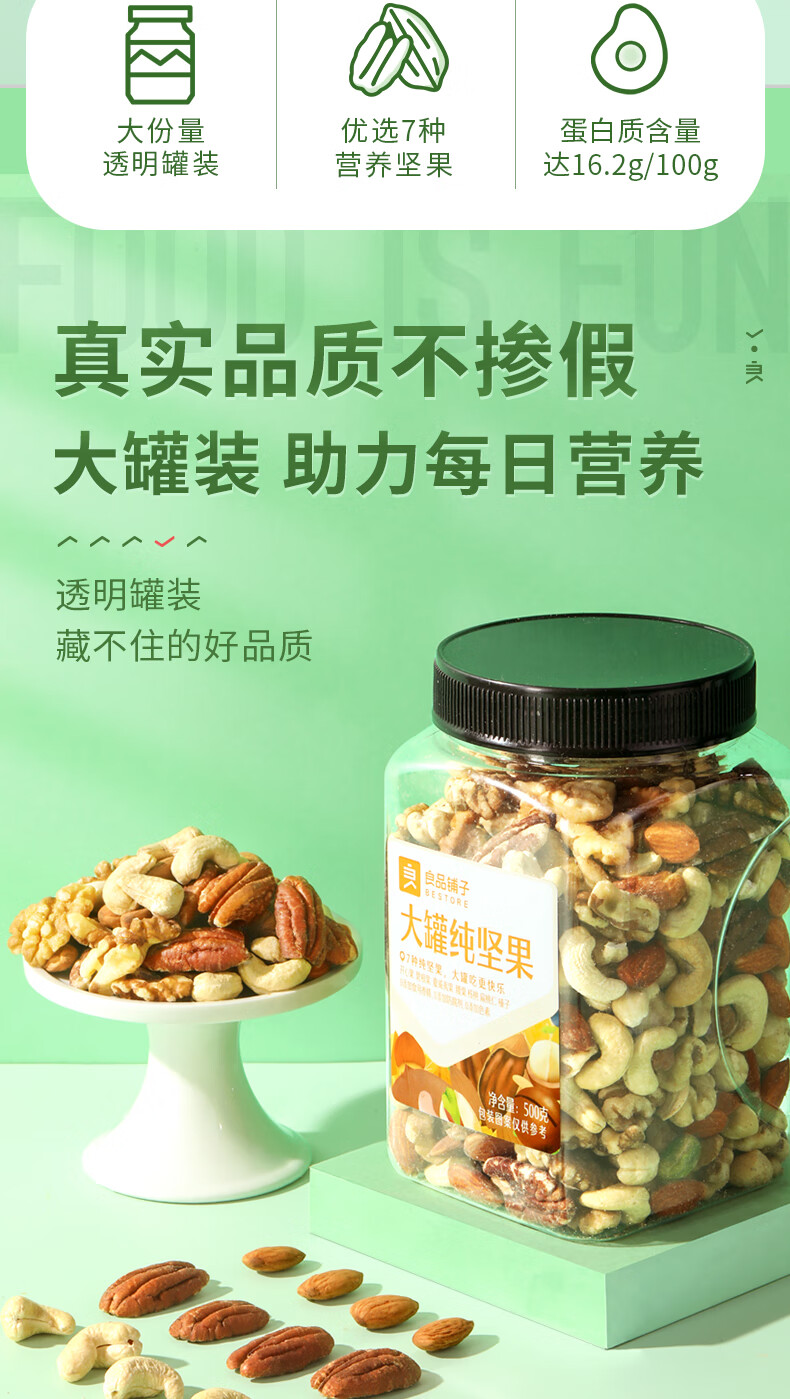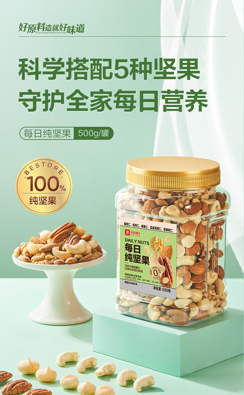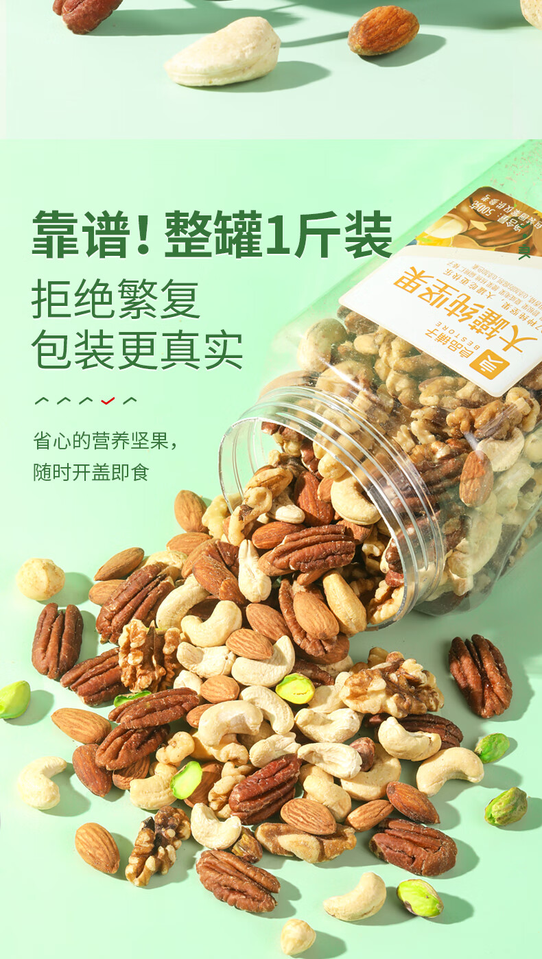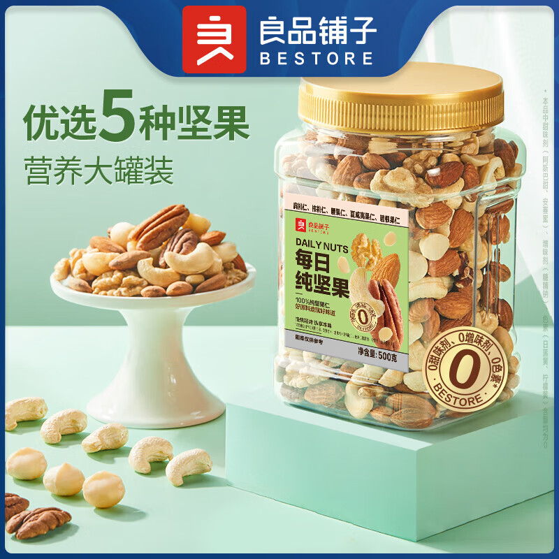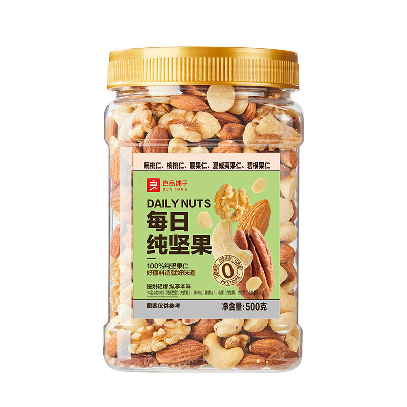 良品铺子罐装坚果 每日坚果果仁休闲零食核桃罐子年货 每日纯坚果500g*1罐
